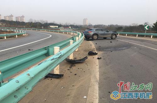 据江西高速交警一支队三大队民警介绍,2月20日早上,在江西省生厚高速公路生米收费站匝道处,发生一起小车撞护栏的道路交通事故,车辆损坏严重,所幸无人员受伤。事故原因是该车司机小朱在匝道上避让车辆时,打方向幅度太大,导致车辆失控撞上了护栏,横在匝道上。