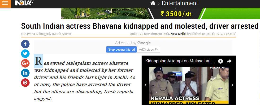 印度媒体报导受害者是当红女星巴瓦纳,不过,警方以本案为性侵案,不愿透露受害者姓名