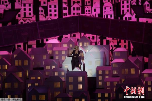 当地时间2月22日,2017年全英音乐奖颁奖礼于在伦敦的O2体育馆举行。水果姐Katy Perry及火星哥Bruno Mars等大牌明星悉数登台。图为Katy Perry登台表演。