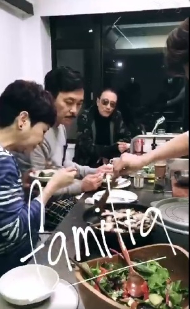 拉姑和现任丈夫江耀城以及谢贤一同现身。
