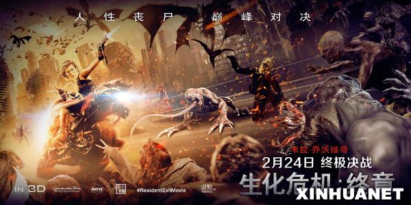 由康斯坦丁影业出品,保罗?安德森编剧并执导,米拉?乔沃维奇、艾丽?拉特、鲁比?罗丝、李准基、伊恩?格雷、威廉?利维、肖恩?罗伯茨、伊恩?马肯等联袂主演的科幻动作巨制《生化危机:终章》将于今日正式公映。
