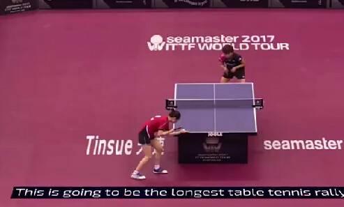 在昨晚的卡塔尔公开赛女单第一轮比赛中,31岁的荷兰女削球手李洁与20岁的北海道籍日本削球手佐藤瞳创造了一个纪录——他们一个球打了10分钟13秒,一共打了766拍。随后因为从旁侧场地打进来一个球,裁判叫停了比赛,否则两人还会继续打下去。