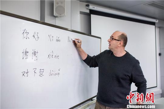 Thomas在课堂里教中文 温千里 摄