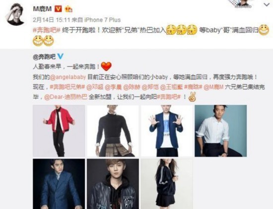 其实早在迪丽热巴被官宣代替Baby上跑男时,老成员们的表现就颇有意思,只有鹿晗一人转发官微公开表示对热巴的欢迎,还后缀了一句“等Baby满血归来”。