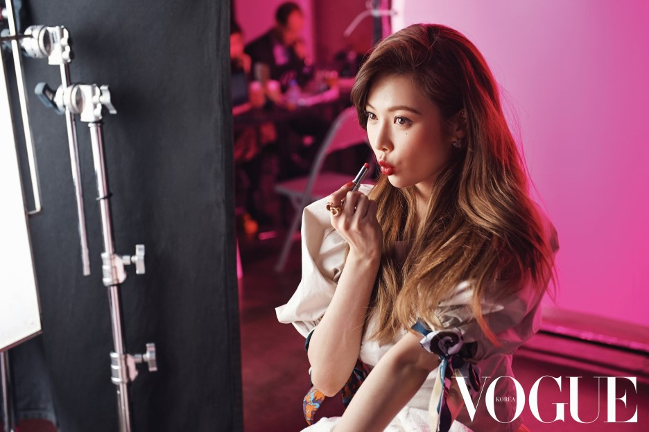 搜狐韩娱讯 韩国女艺人泫雅近日受某时装杂志邀请,为该杂志最新一期拍摄了一组美妆写真。吕东垠/文 版权所有Mydaily禁止转载