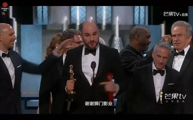 颁奖人先是念出最佳影片是《爱乐之城》,整个《爱乐之城》的主创都上台,情绪激昂地致感谢词将近 5 分钟……