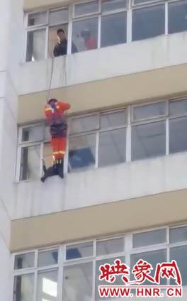 消防员到达现场,通过室外观察发现病房大楼有一女子双腿在外坐在9楼窗台,情绪非常激动,经询问现场知情人,得知该女子为情所困产生轻生跳楼的念想,情况十分危急,现场指挥员果断决定,在地面撑起救生气垫,疏散周围围观人群,同时根据现场情况研究制定救援方案。
