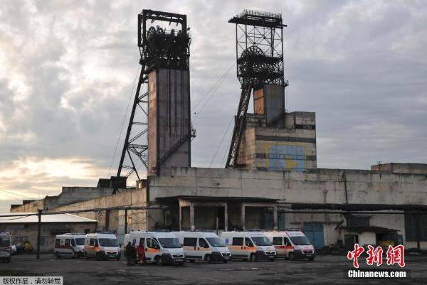 当地时间2017年3月2日,乌克兰利沃夫,救护车抵达发生事故的煤矿现场。据乌国家紧急情况局3月2日通报,乌克兰西部“草原”煤矿的爆炸发生在当天中午,并引发矿井坍塌。