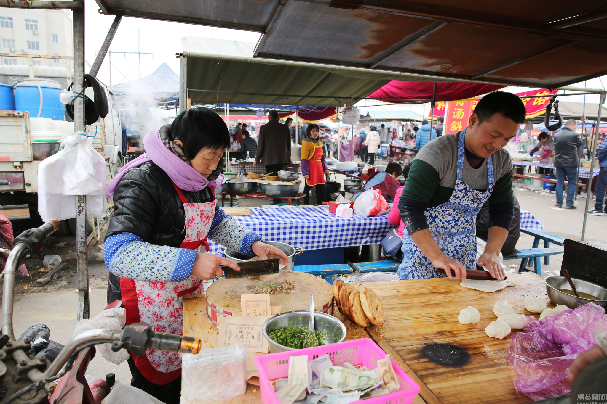 老师辞职卖肉夹馍。2017年01月15日,陕西省西安市,80后张武杰在灞桥集市上卖山西火烧夹肉,她的母亲帮着他剁肉夹馍。山西火烧夹肉其实就是陕西的肉夹馍。魏永贤/视觉中国