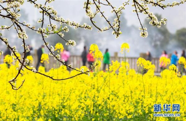 3月4日,人们在重庆市南川区油菜花田里游玩。近日,重庆市南川区国家现代农业示范区里春花烂漫,吸引游人前来踏青赏花。 新华社发(瞿明斌 摄)