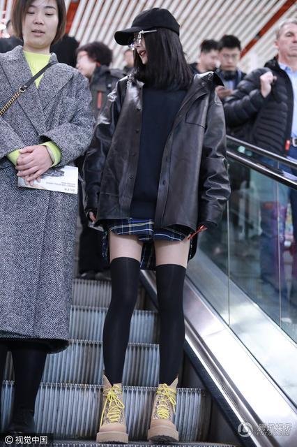 视觉中国讯 3月7日,杨幂现身首都机场。杨幂玩下衣消失变校园少女风,遇粉丝打招呼亲切微笑。