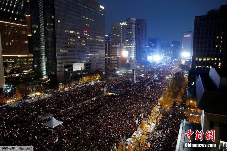 11月29日,朴槿惠第三次就“亲信门”向民众道歉称,将包括缩短总统任期等自己的去留问题,交由国会决定。共同民主党和国民之党就弹劾草案达成协议。图为当地时间11月12日,韩国首尔,韩国超过1500个市民团体于12日下午4时在首尔举行第三轮烛光集会,要求朴槿惠下台对“亲信干政门”负责。