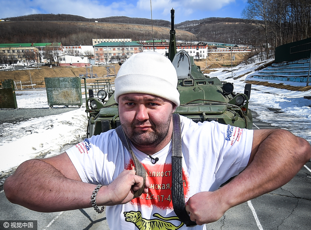 俄罗斯大力士再展“神力” 拖动13.6吨装甲运输车