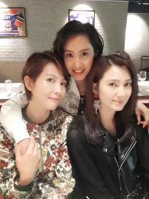 朱茵揽着蔡少芬和洪欣的肩,几位女神风采依旧不减当年。(资料图)