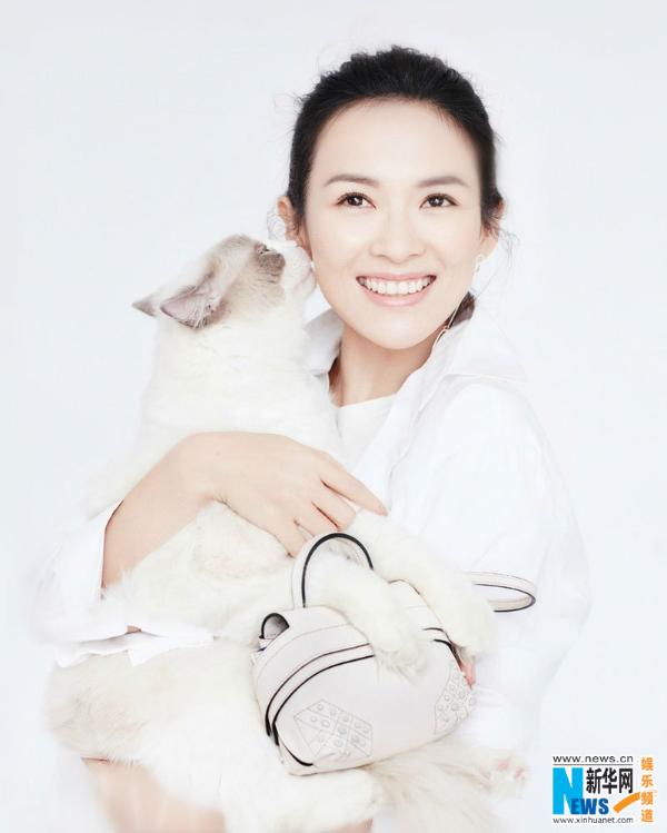 章子怡时尚封面气质满分 与喵星人亲密互动