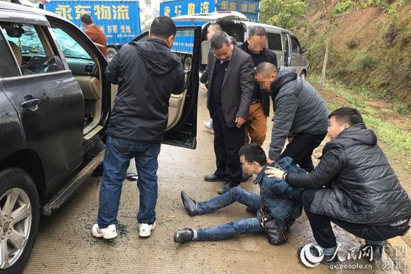 运毒车辆被堵截后,民警迅速上前击碎车窗玻璃,一举将嫌犯全部控制,在车内缴获毒品一批及自制手枪一支,此时子弹已经上膛……这是3月11日灵山警方对一起特大武装运输毒品案嫌犯抓捕时的惊险场景。此案警方共抓获涉案人员4人,缴获毒品海洛因、冰毒共7199.61克及枪支2支、子弹64发、猎枪弹3发。
