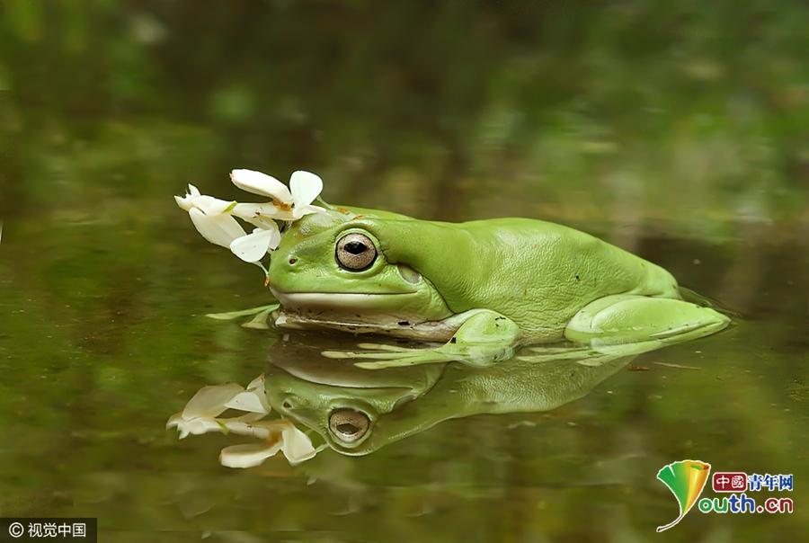 当地时间2017年3月10日,印尼巴东,一只白色的兰花螳螂。产于东南亚的马来西亚的热带雨林区,很多不同种类的兰花都会生长着各种的兰花螳螂,它们有最完美的伪装,而且能随着花色的深浅调整自己身体的颜色。