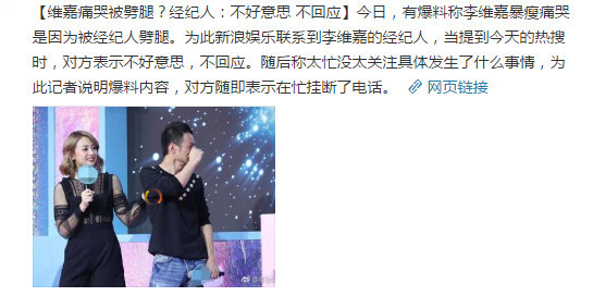 不过如今大家已经把李维嘉的经纪人扒了个底儿掉,经纪人却表示不予回应。