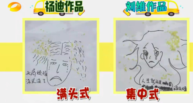 后面作画的环节,还要找出杨迪和刘维创意画的区别,自己带笑点。