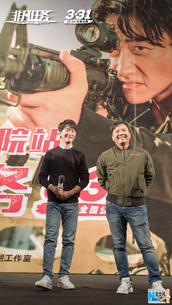 由麦兆辉、潘耀明导演,庄文强编剧,黄斌监制,黄轩、段奕宏、郎月婷、祖峰等领衔主演的电影《非凡任务》正式提档至3月31日18点全国公映。3月18日晚,《非凡任务》全国二十城路演在武汉拉开帷幕,这也是影片的全国首场点映,导演麦兆辉、潘耀明,主演黄轩到场。在《无间道》中塑造过经典警察卧底形象的麦兆辉,这一次把内地缉毒公安卧底拍得感人至深。