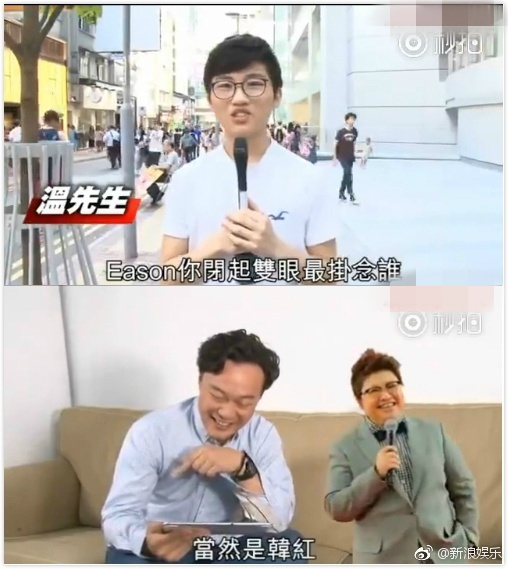 新浪娱乐讯 韩红[微博]参加《我是歌手》第三季总决赛时曾邀陈奕迅[微博]助阵帮唱,但现场镜头被网友P成表情包广为流传。值得一提的是,陈奕迅竟知道这张表情图,在采访中被网友问当你闭上双眼最挂念谁?陈奕迅笑着称:“当然是韩红。”