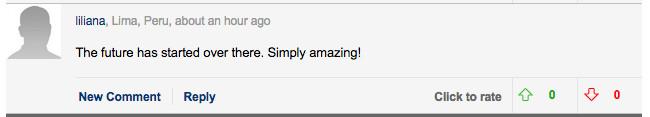 位于秘鲁利马的网友评论说:未来已经从那里开始。简直太惊奇!