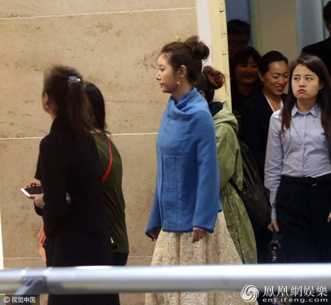上身披着蓝色的上衣,获工作人员细心呵护整理衣物,生怕冻着。