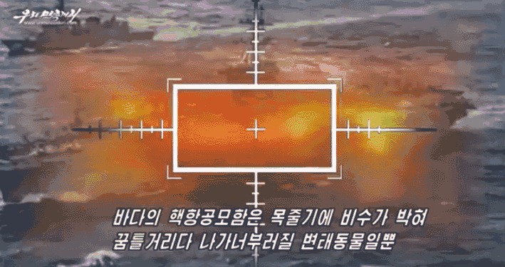 其实在发射导弹的前几日(18日),朝鲜官方公布了一段合成视频,在这段视频中包括,朝鲜军队击毁美航空母舰和战略轰炸机的画面。