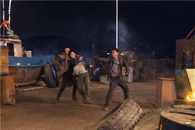 好在探班当天,片方非常实惠地准备了一场点对点致敬的经典枪战场景,让人得以一窥究竟。片场位于青岛黄岛区的一家造船厂。媒体到达片场的时候已经是晚上7点,漆黑的夜里造船厂灯火通明,黑暗中波光粼粼的海边,灯光中显得异常庞大的吊车和集装箱,让人瞬间穿越,仿佛看到《英雄本色》那经典一幕。但片场周围近十辆道具特警车和全副武装的SWAT,又把人瞬间拉回现代,提醒人们这是一部现代版的《英雄本色》。