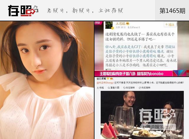 【王思聪掌握张子萱八卦猛料,被称娱乐圈纪检委】“国民老公”王思聪可谓是娱乐圈的大红人,经常在微博上炮轰明星名人。他曾爆料女演员朱圣祎为入上戏出卖多年闺蜜,称其不仅被老男人包养,更把同学介绍给其他老男人拿回扣。在陈赫与张子萱出轨新闻闹得沸沸扬扬之时,有网友曝光了疑似张子萱的微博小号,称上面有她与另一个男人的聊天记录,并认为陈赫其实并非小三实为小四。思聪也不忘火上添把柴,转发微博截图写道:“其实我也有些关于这女孩的料,但还是不爆了吧……”除此之外,思聪老公还曾疑似爆料黄子韬约炮等八卦。(图左朱圣祎,图右王思聪爆料)