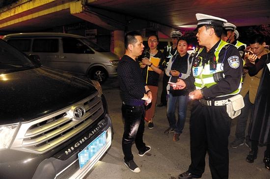 在该查车点,新快报记者看到民警在路面三条车道的里外两条车道设卡,对过往的司机实施酒精检测,现场还有荷枪实弹的民警在旁警戒。据悉,在民警查车的过程中,时常会遇到驾驶员提前掉头、拐弯,或是提前更换驾驶员等躲避检查的行为。为此,前天晚上还有两名民警在离检查点十来米的路口蹲守。