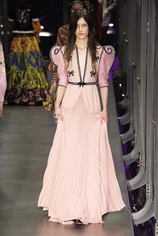 ▲ 2017年Gucci秀场上的羊腿袖元素,有更夸张的廓形,更接近十九世纪时的羊腿袖。