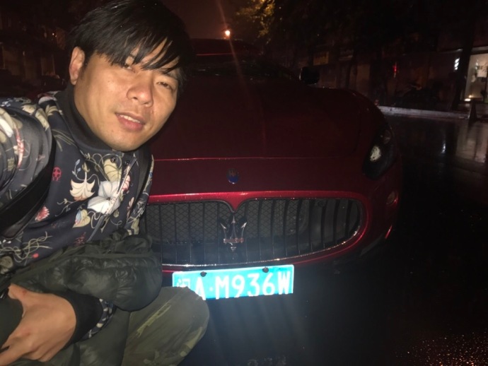事发后,微博上传出一张该司机与自己受损爱车“ 淡定 ”自拍合影的照片,引网友围观。