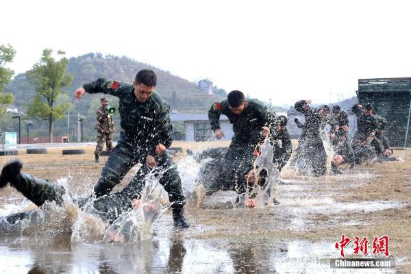 3月24日,记者从武警浙江总队丽水支队获悉,从20日开始,该支队开始展开“魔鬼周”极限训练。队员们每天训练时间必须达16个小时以上,要在连绵不断的春雨中进行长途徒步行军、十公里武装奔袭、野外按图行进、战术演练、水上追逃和综合技能训练以及各类高强度体能科目等训练。 刘治乾 摄