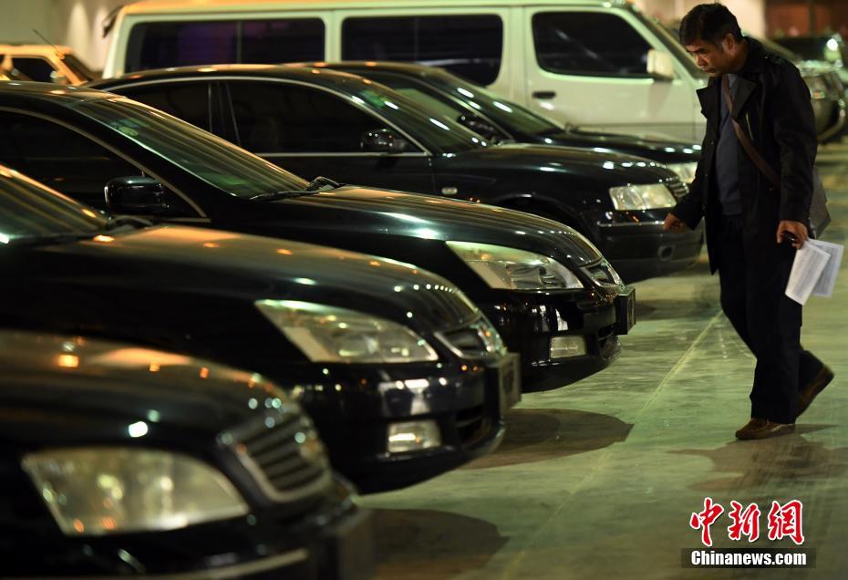 3月24日,在展厅里察看车辆的民众。中央驻滇二级预算单位公务用车制度改革取消车辆将于3月26日在昆明滇池国际会展中心开拍,此次拍卖的车辆为十八家中央驻滇机关的公务用车,共计98辆车,吸引不少购车者提前打探。 中新社记者 李进红 摄
