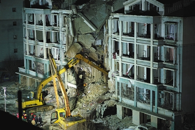 大门旁边的欣荣超市里,老板张志国夫妇和他外甥还在等待救援消息。在叔伯弟兄9个中,张志国排行老四。他住在5号楼3楼的六弟张志清在爆炸中杳无音信,“他平常午饭后会出去打扑克或打麻将,偏偏今天留在家里休息”,张志国说,当时弟弟就躺在朝南客厅的沙发上。妻子和女儿在北边房间,爆炸后顺利逃出。