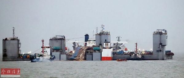 目前,打捞组正在进行船舶固定工作,在固定工作和缓冲装备设置结束后,沉船将随即被拖至距离打捞海域东南方向3公里处,即半潜船所在的安全海域。