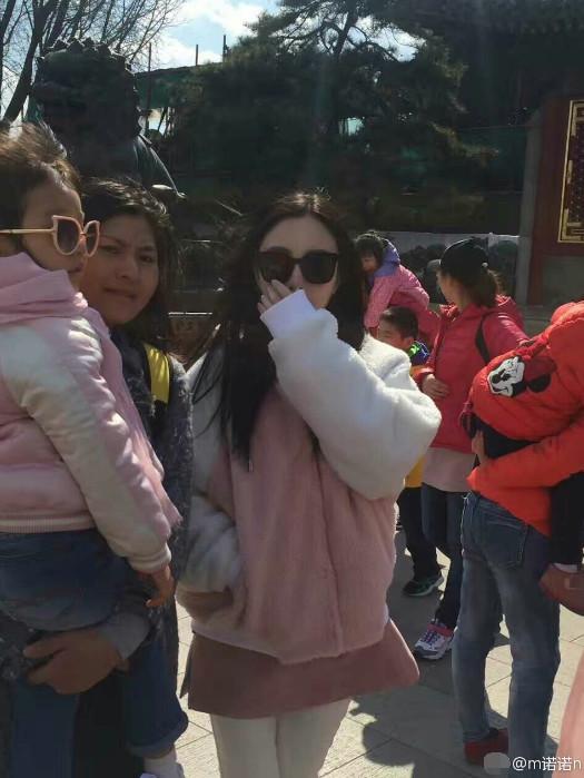 杨幂着短裙众人簇拥