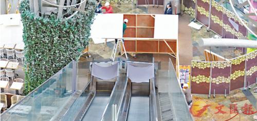 肇事4楼通往8楼的“通天梯”上下行线仍暂停使用。图片来源:香港《文汇报》。