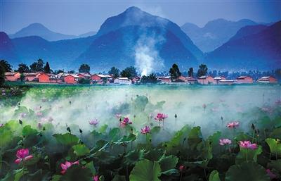 喜欢摄影则不妨起个大早,到青龙山上捕捉普者黑的日出景象。清晨逆光下的普者黑透着雾气,每一座孤峰都好似透明,加上水面倒映的晨光,有着近乎魔幻的光影效果。