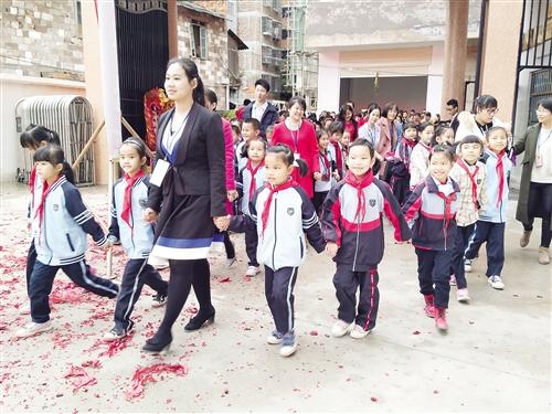 3月25日,2006年创办的南宁市西乡塘区蓝天学校为扩大学校面积、提高服务质量,由原校址迁往新阳路南一里。学校力争建设能陶冶高尚情操的校园、发展个性特长的乐园、培养合格人才的花园。图为师生共同走进新学校。(佟镝 摄影报道)