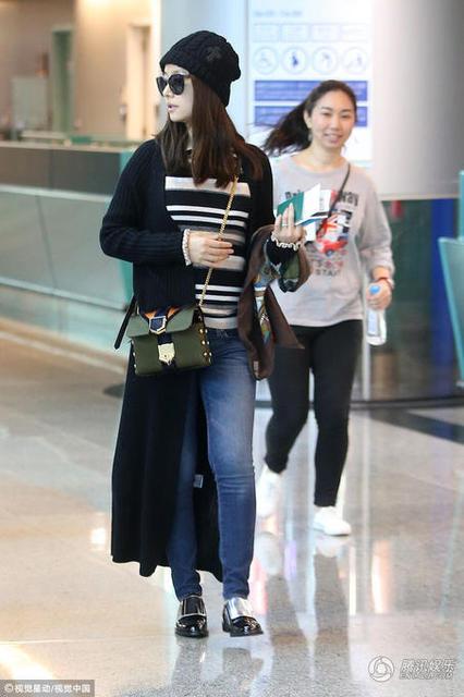 林心如素颜现身机场,产后身材有点发福。