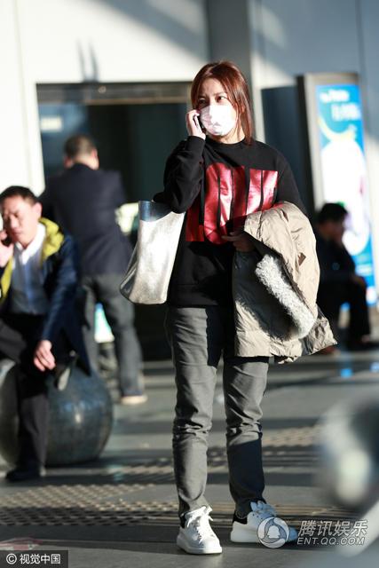 视觉中国讯 3月27日,赵薇素颜现身机场,口罩遮面大眼无神显疲惫 ,穿着朴素不露富,一路不停接听电话业务忙。