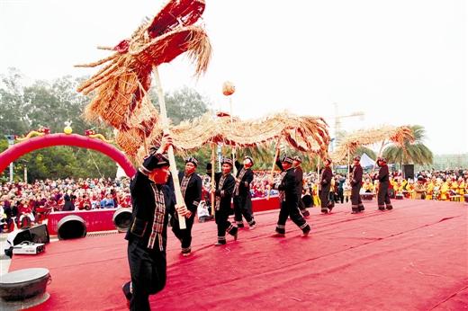 3月24日,象州县庆祝“壮族三月三”活动上精彩的舞龙表演。黄隆天/摄