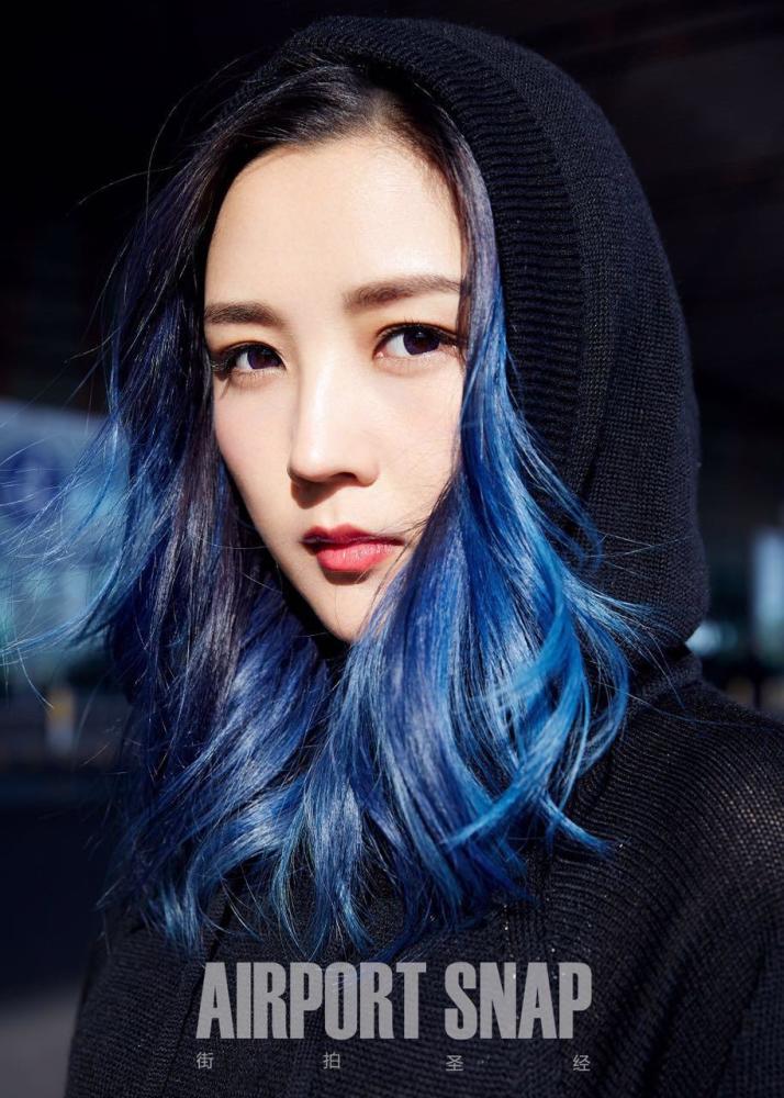 照片中何洁身穿黑色长衫,长衫开叉的设计有点类似古典旗袍。