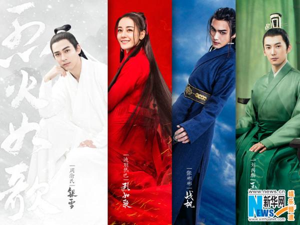 根据言情作家明晓溪同名小说改编,《三生三世十里桃花》原班人马携手豪华幕后团队阵容,共同打造的绝美燃情江湖奇恋大剧《烈火如歌》首度宣布主演阵容,并曝光“炽烈”版角色海报。知名男演员周渝民饰演银雪,新生代人气小花旦迪丽热巴饰演烈如歌,新生代人气演员张彬彬饰演战枫,90后实力男演员刘芮麟饰演玉自寒的新鲜组合,不仅颜值超高,赏心悦目,在演技方面的表现也备受期待。而曝光的“炽烈”版角色海报,采用不同明艳大色块突出主角们不同性格的设计,不仅让人一眼感受到角色的不同状态,还极富强烈的感官冲击,让人不禁对这段尘封十九年的江湖情缘引发的奇恋故事产生好奇。