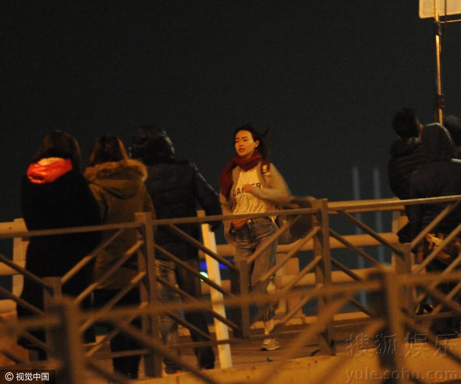 衣着单薄的唐嫣不顾江风寒冷,深夜在黄浦江边来回冲刺跑。
