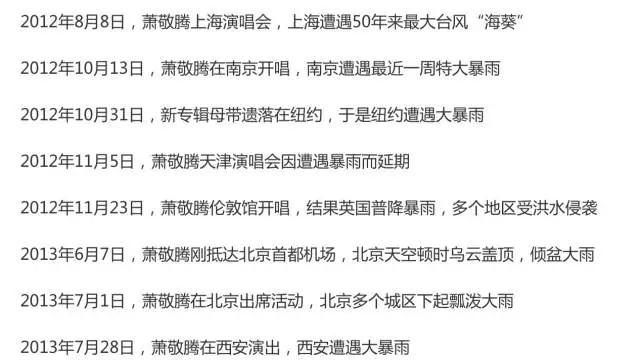 这一次或许可以解释为偶然,但2012年萧敬腾唱到哪,哪就降雨。他的演唱会也被封为“南水北调”工程。