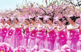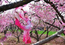 ②桃花林里舞者翩翩起舞。