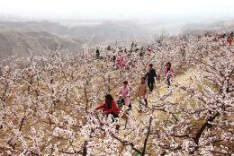 ⑦三管镇冯坡窑村杏花地里如织的游客在赏杏花,闻花香,宛如人在画中游。